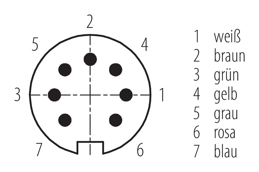 4. M16 Kabelstecker, Polzahl: 7 (07-b), ungeschirmt, am Kabel angespritzt, IP67, PUR, schwarz, 8 x 0,25 mm², 2 m