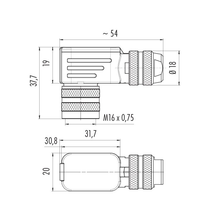4. M16 Connettore angolare femmin, Numero poli: 8 (08-a), 4,0-6,0 mm, schermabile, crimpare (I contatti a crimpare devono essere ordinati separatamente), IP67, UL 2238