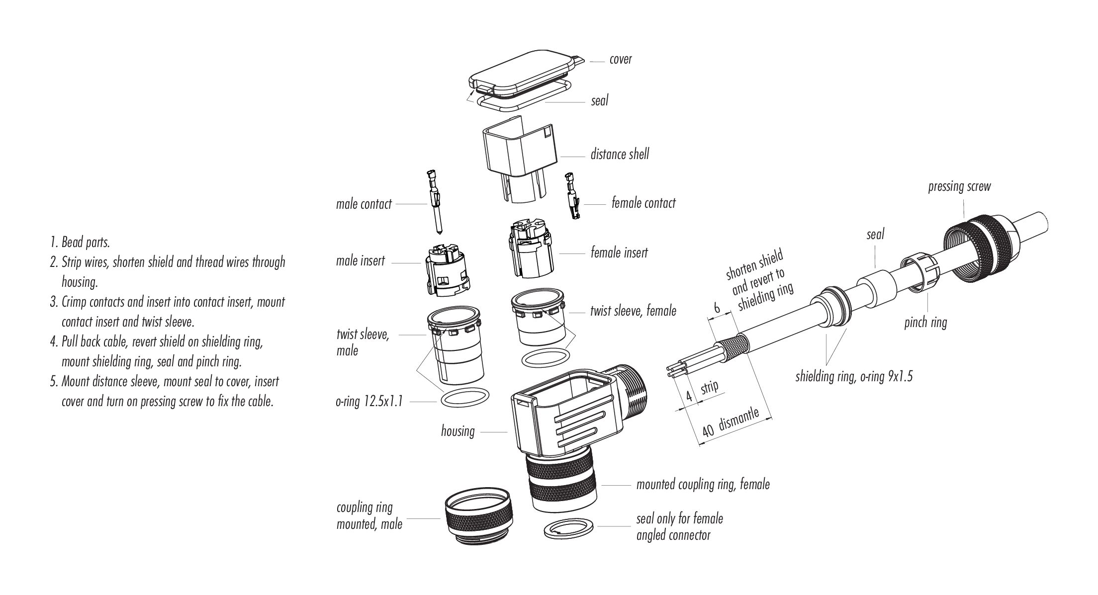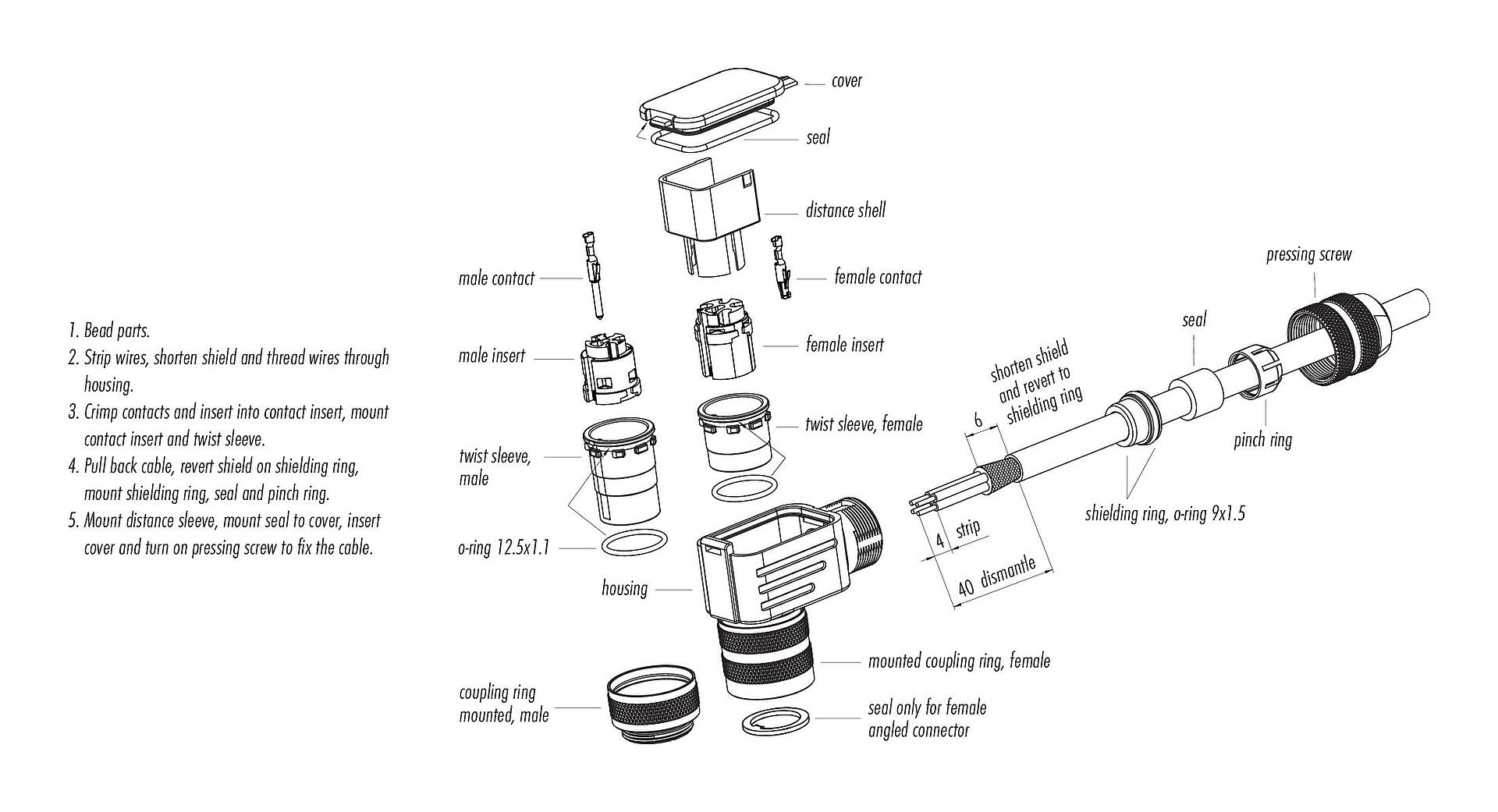 - I connettori utilizzati in circuiti con tensioni pericolose al tatto possono essere installati e utilizzati solo da o sotto la supervisione di persone con una formazione in ingegneria elettrica, tenendo conto dei regolamenti e delle norme applicabili.
