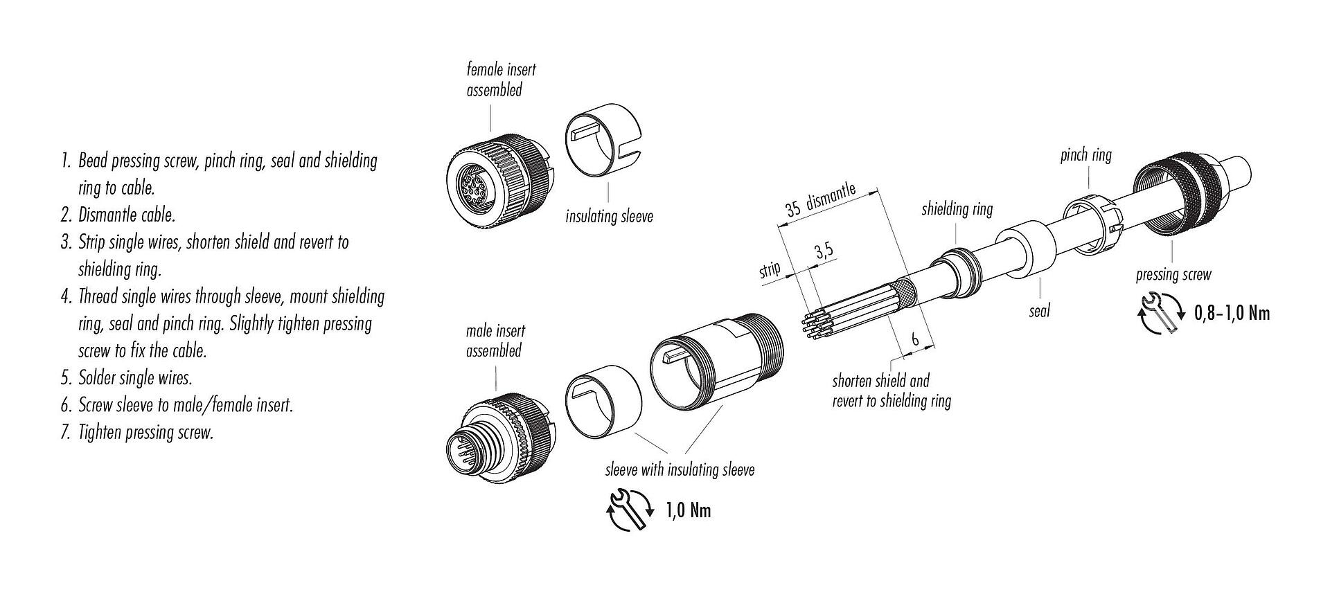 - To lock the cable connector with the device connector, the threaded ring is tightened "hand-tight" (approx. 60 cNm).