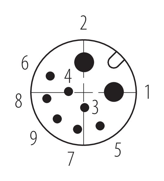 M12 Einbaustecker, Polzahl: 2+7, löten, IP67 gesteckt und verriegelt, Frontmontage