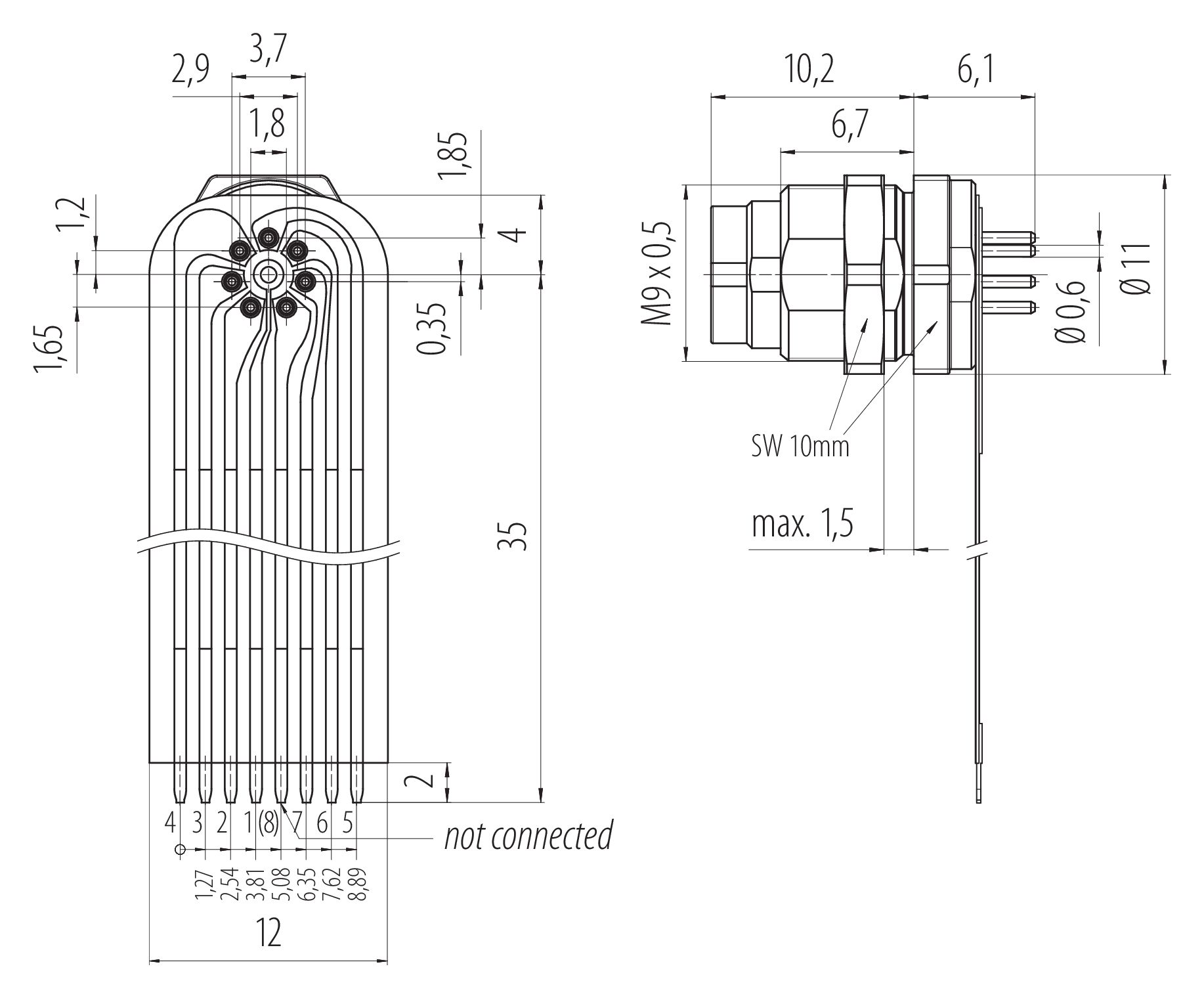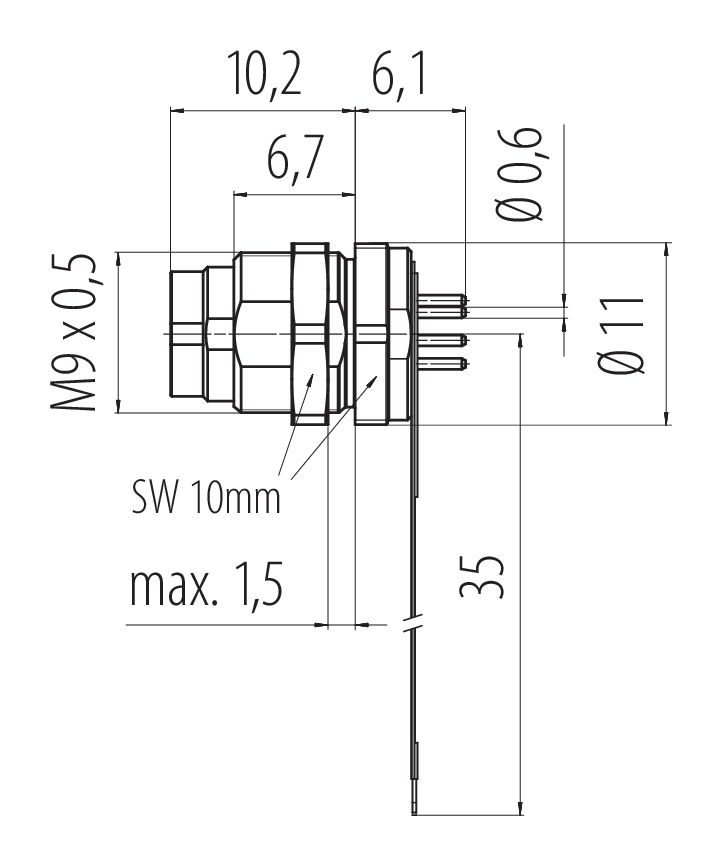 M9 Flanschstecker, Polzahl: 7, ungeschirmt, THT, IP40, M9x0,5, Rückwandmontage