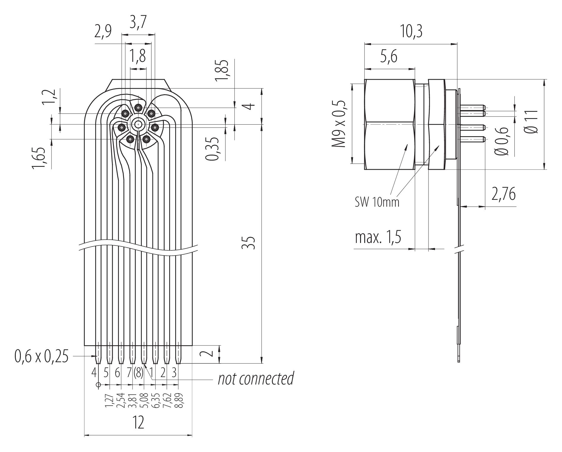 M9 Flanschdose, Polzahl: 7, ungeschirmt, THT, M9x0,5, Rückwandmontage