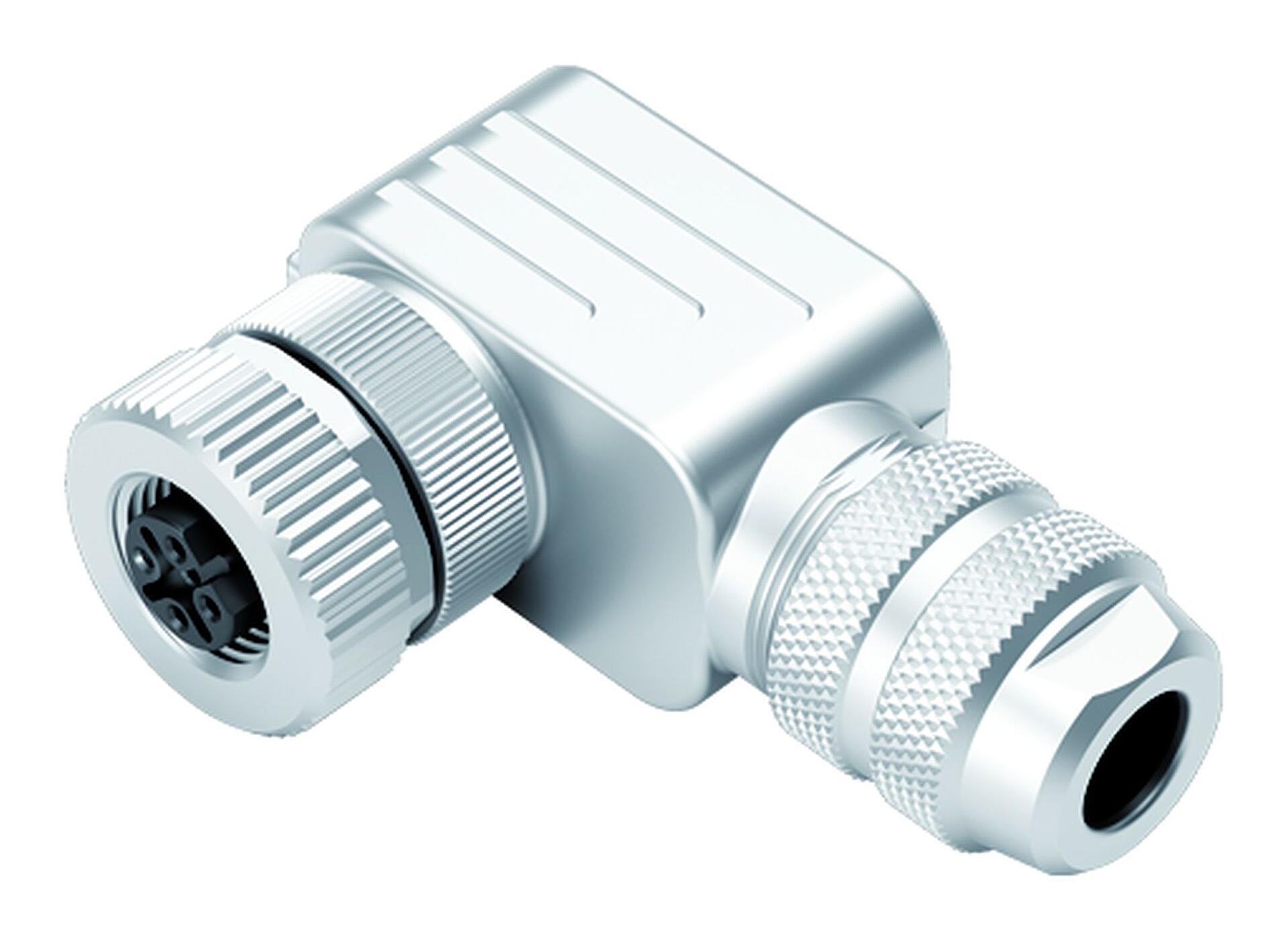 M12 derékszögű aljzat, : 5, 6,5-8,5 mm, árnyékolható, csavaros bilincs, IP67, UL 2238
