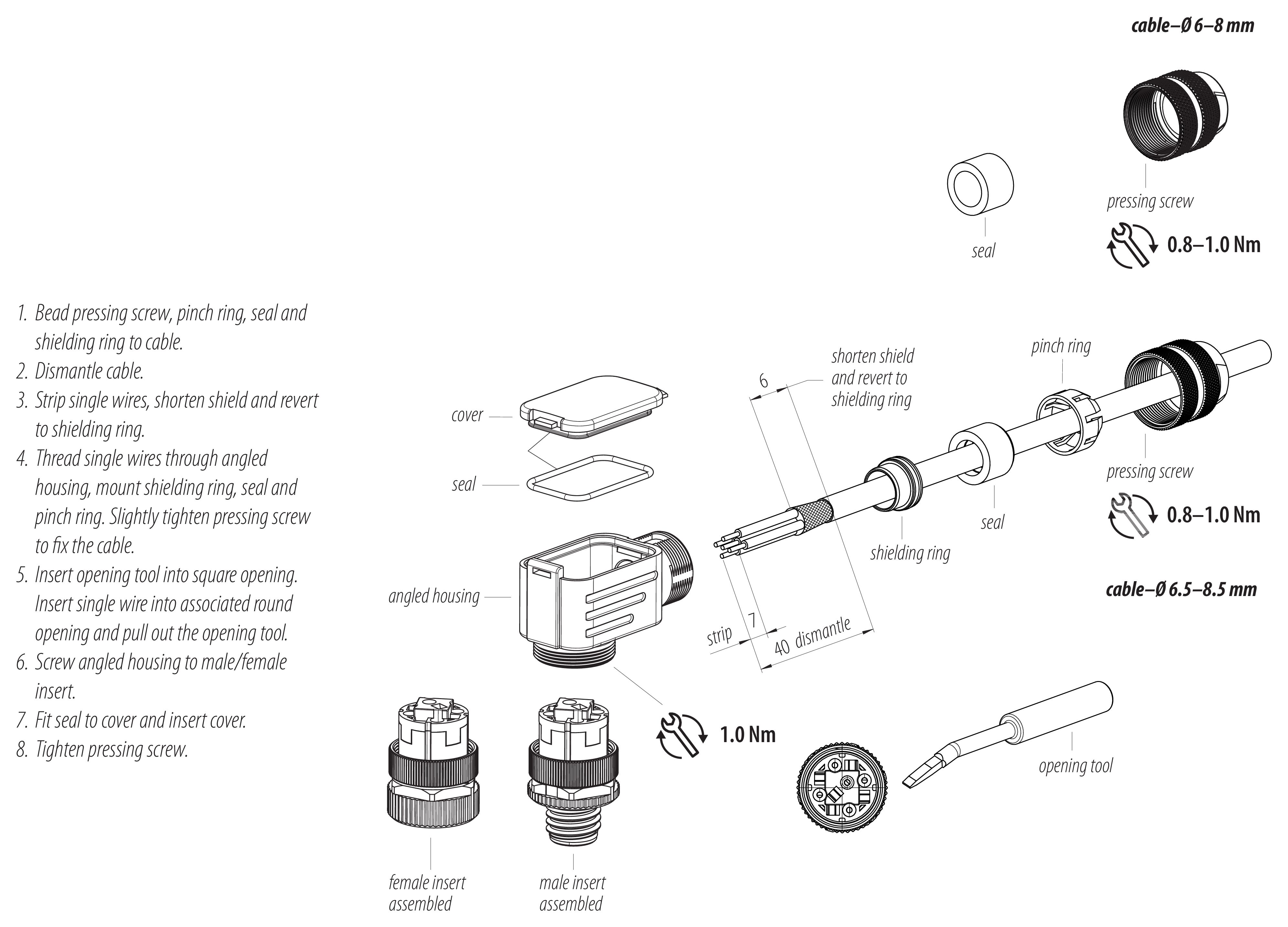 - To lock the cable connector with the device connector, the threaded ring is tightened "hand-tight" (approx. 60 cNm).