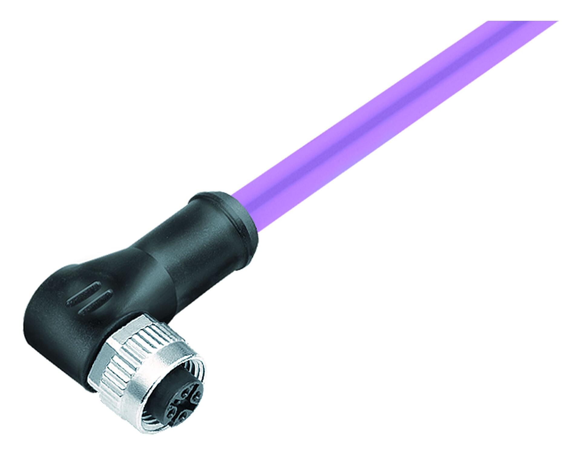M12 derékszögű aljzat, : 5, árnyékolt, kábelre öntött, IP68, UL 2238, CAN busz, PUR, lila, 1 x 2 x AWG 22 + 1 x 2 x AWG 24, 10 m