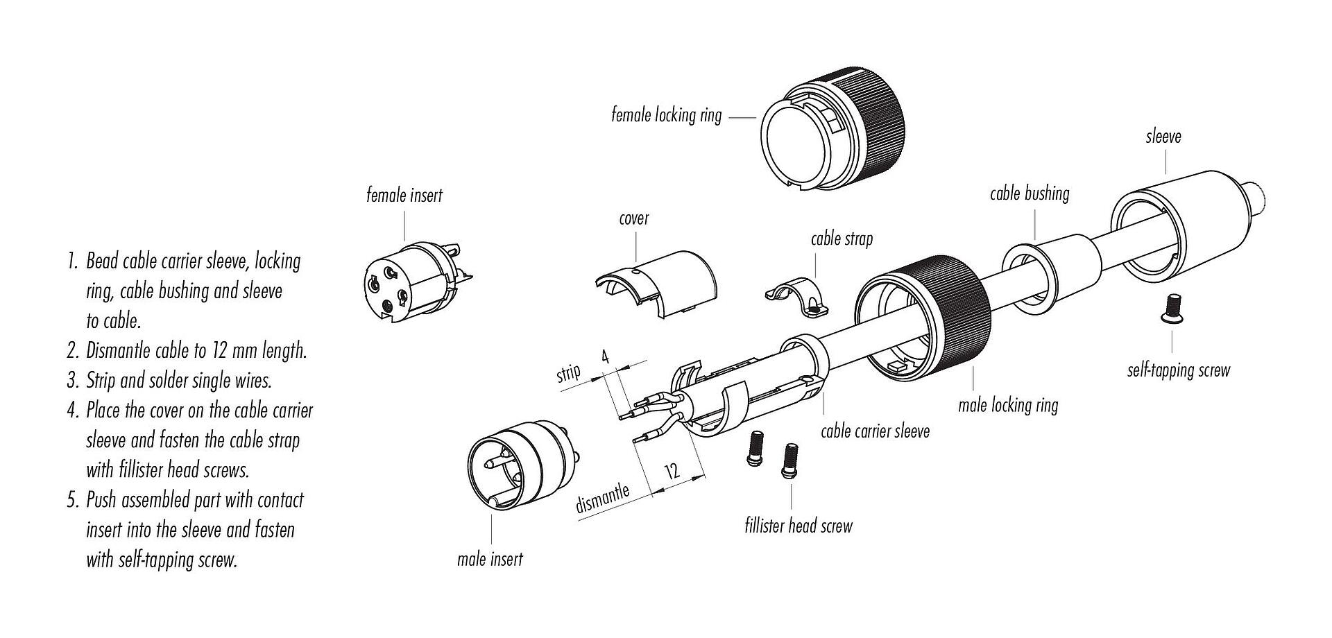 - Para proteger contra abertura não intencional do conector, a rosca entre a carcaça e o cabeçote do conector deve ser fixada com um adesivo adequado de cianoacrilato quando usado em circuitos com tensões perigosas ao toque. Isto não se aplica aos conectores utilizados nos circuitos SELV e PELV de acordo com a norma IEC 61140 (EN 61140, VDE 0140-1).