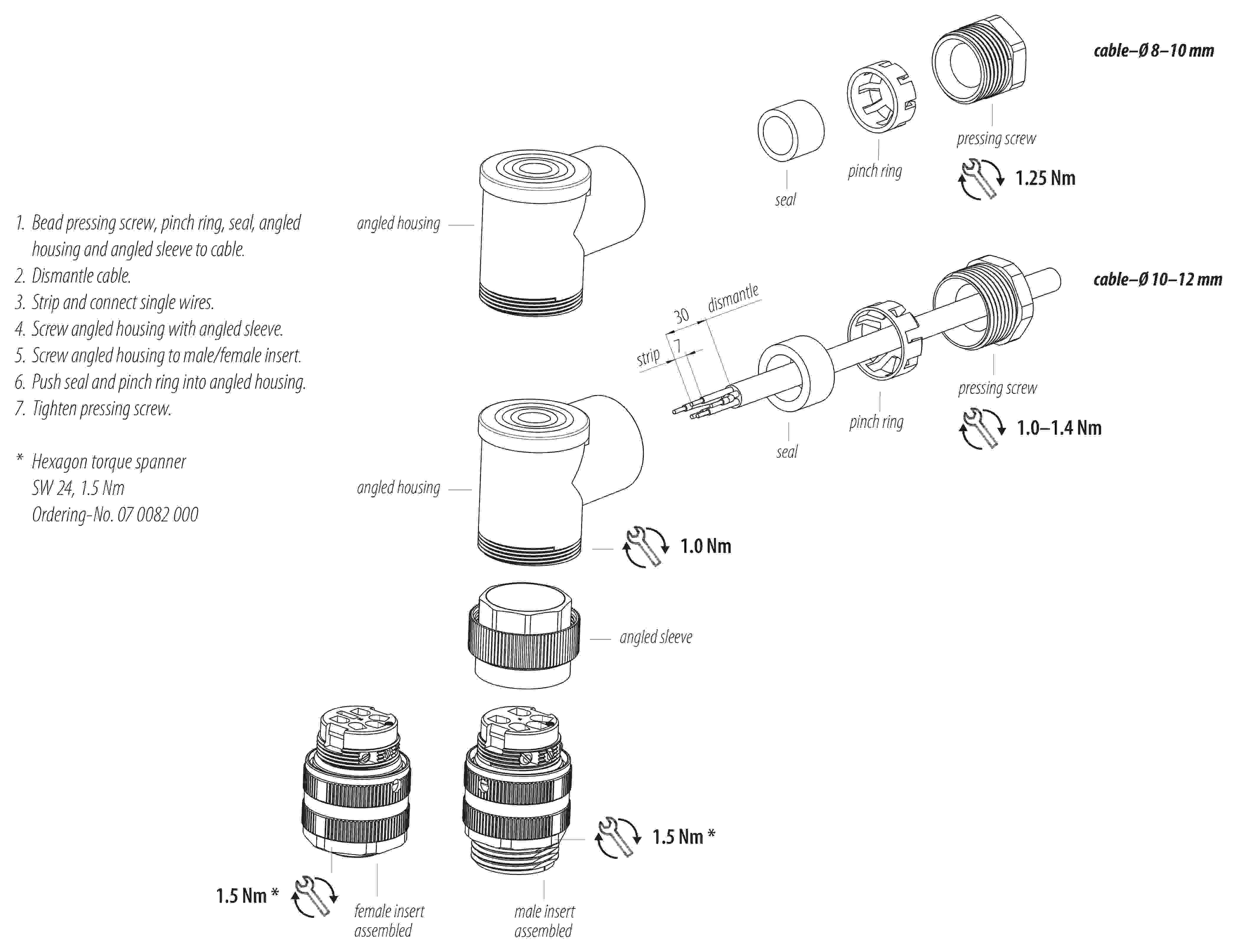 - Чтобы соединить кабельный разъем с разъемом устройства, мы рекомендуем затянуть резьбовое кольцо с моментом 1,5 Нм. Подходящий динамометрический ключ поставляется в качестве аксессуара (№ заказа 07 0082 000).