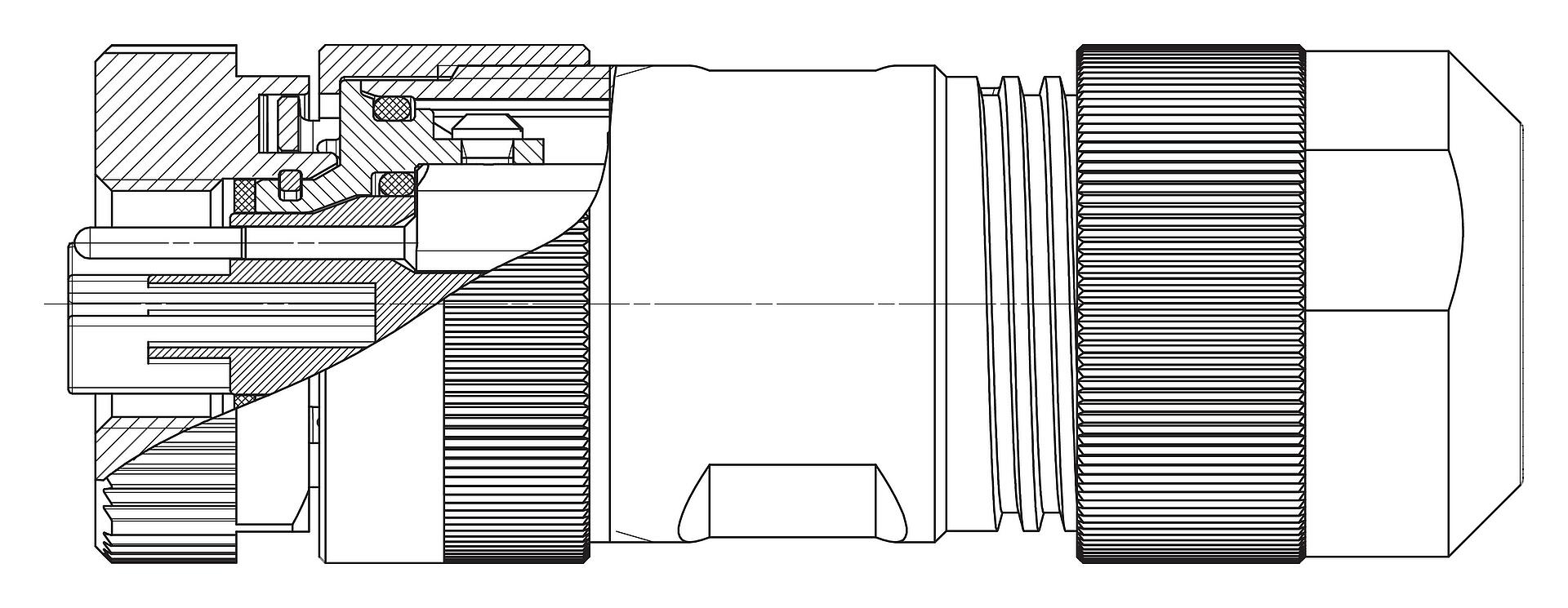 - Чтобы соединить кабельный разъем с разъемом устройства, необходимо от руки (ок. 60 сНм)затянуть резьбовое кольцо .