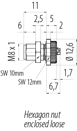 M8 オスパネルマウントコネクタ, 極数: 4, はんだ, IP67/IP69K, M10x0.75, 背面パネルマウント, はんだカップ付き