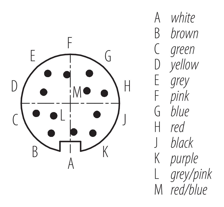 M16 각진 플러그, 콘택트 렌즈: 12, 차폐되지 않음, 케이블에 몰딩, IP67, PUR, 검정, 12x0.25mm², 5m