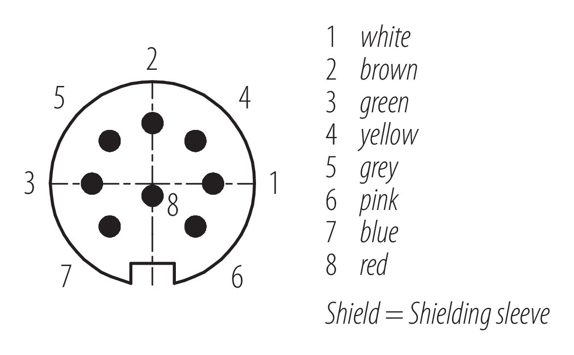 M16 각진 플러그, 콘택트 렌즈: 8, 쉴드, 케이블에 몰딩, IP67, PUR, 검정, 8x0.25mm², 2m