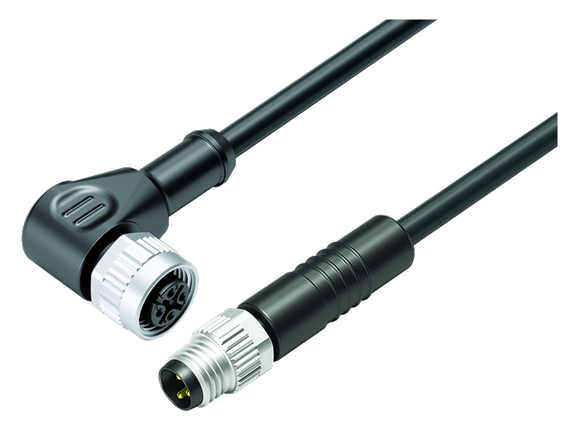 M12/M8 Phích cắm thẳng - ổ cắm bẻ góc, Số lượng cực : 3, không có chống nhiễu, ép phun vào dây cáp, IP67/IP69K, UL 2238, PUR, màu đen, 3x0,34mm², 1m