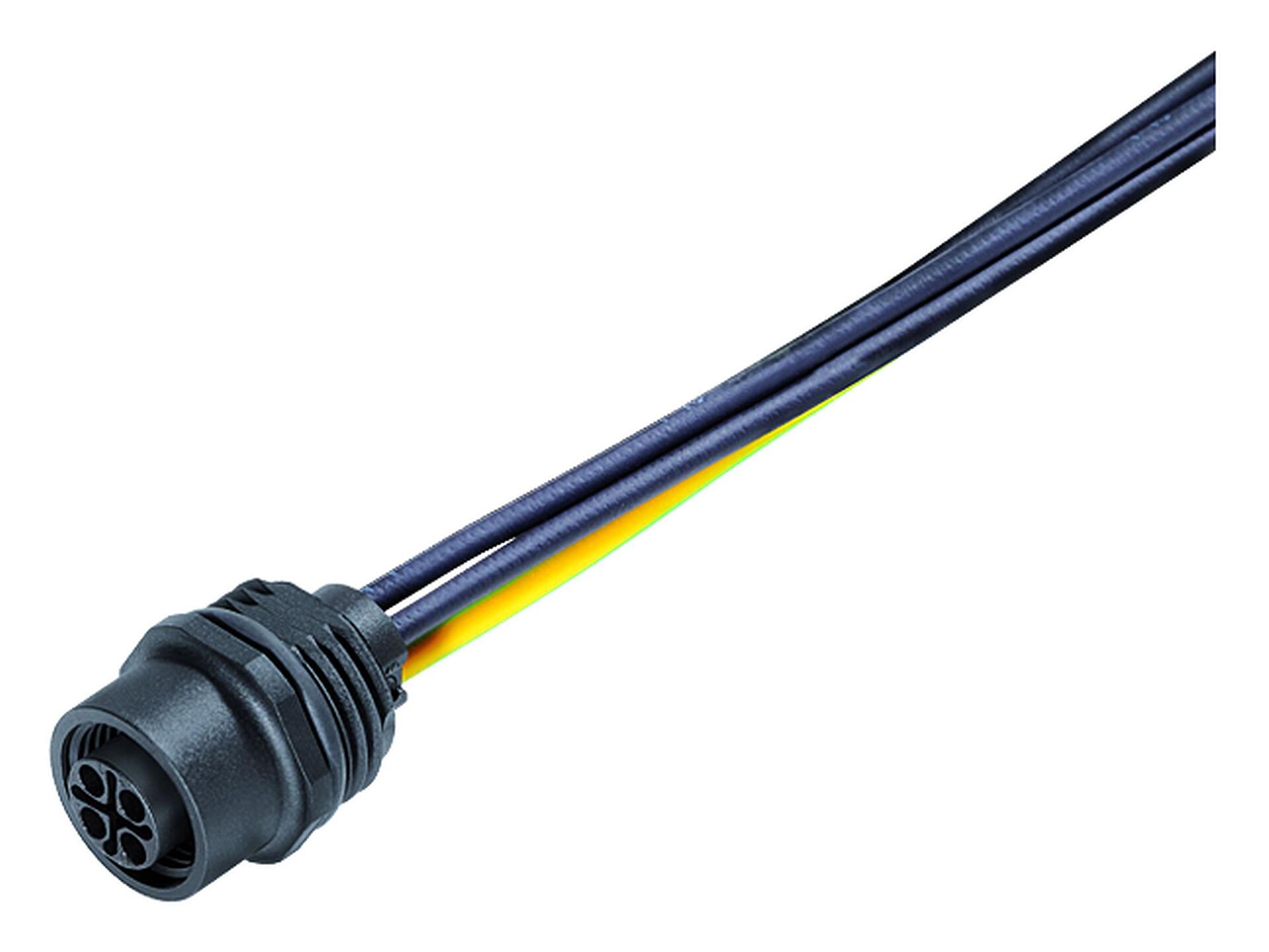 M12 Ổ cắm gắn bảng, Số lượng cực : 4, không có chống nhiễu, dây đơn, IP68, UL 2238, M16x1,5, Gắn phía trước