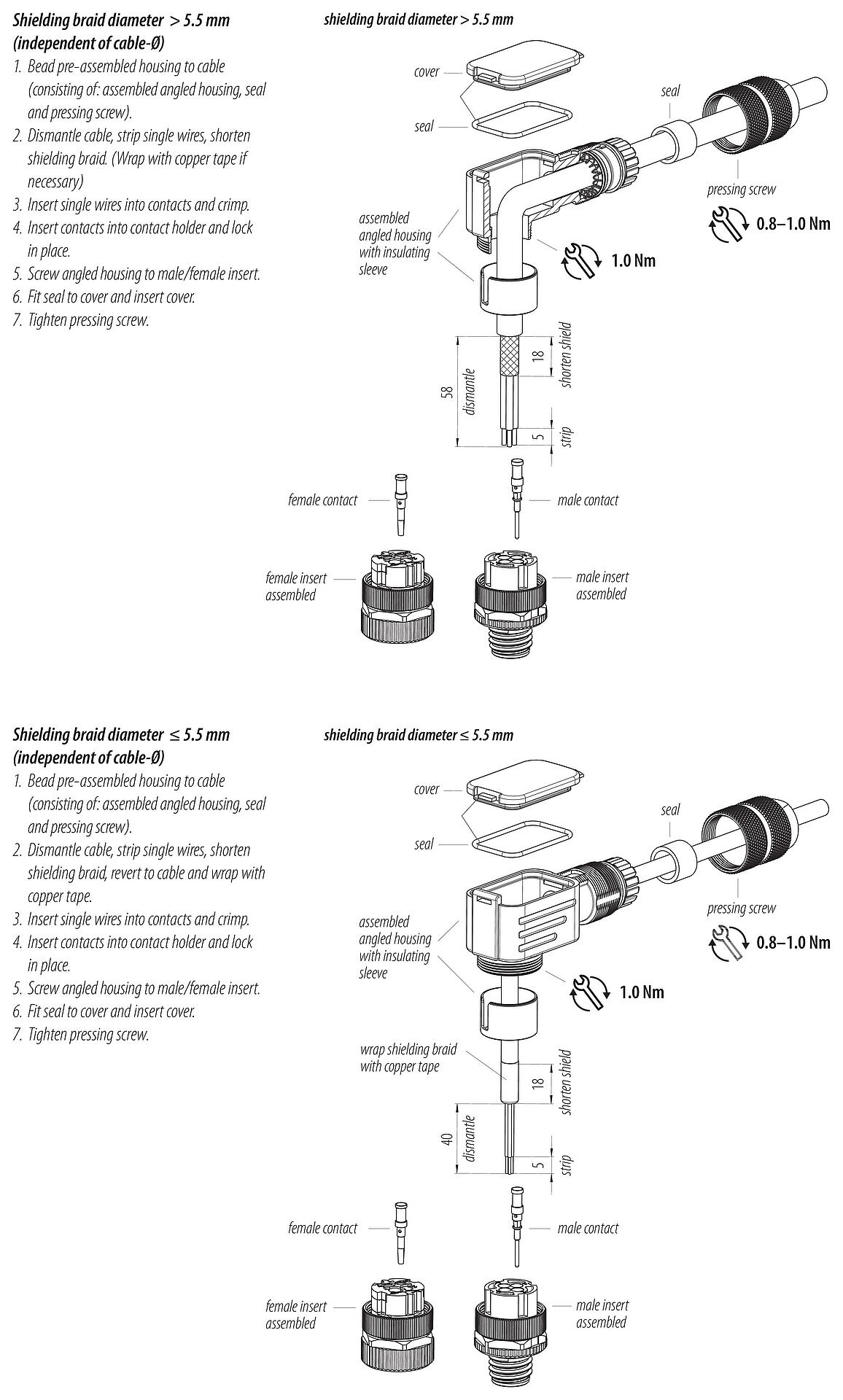 - Connectors which are used in circuits with voltages dangerous to the touch may only be installed and used by, or under the supervision of, persons with electrical engineering training, taking into account the applicable regulations and standards.