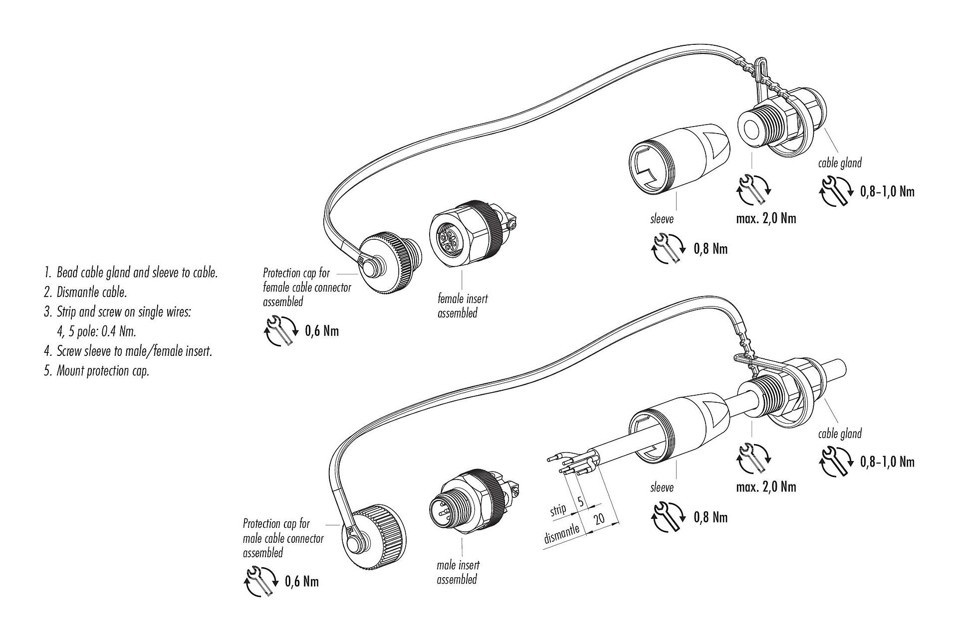 - To lock the cable connector with the device connector, the threaded ring is tightened "hand-tight" (approx. 60 cNm).